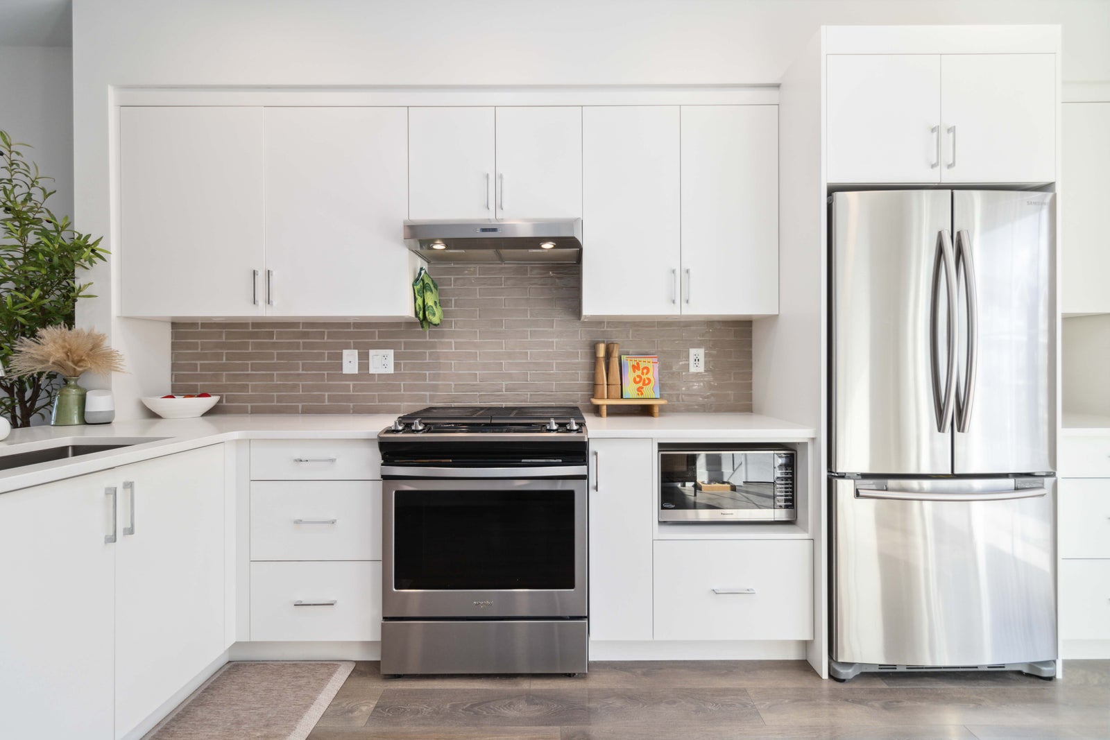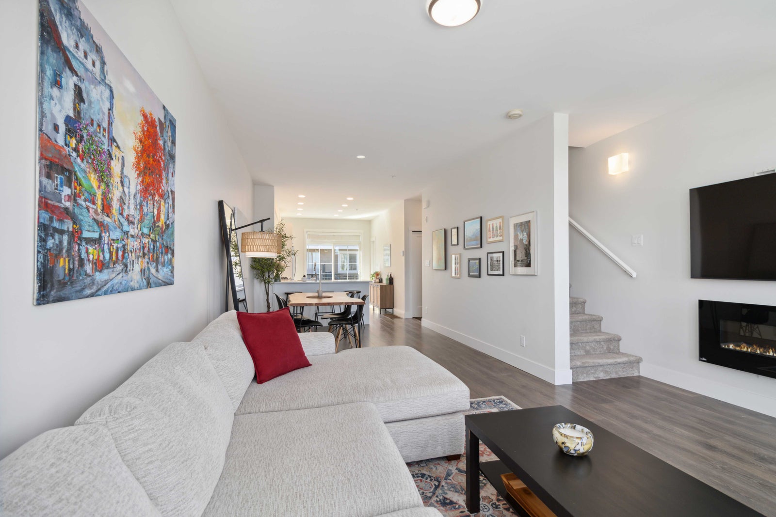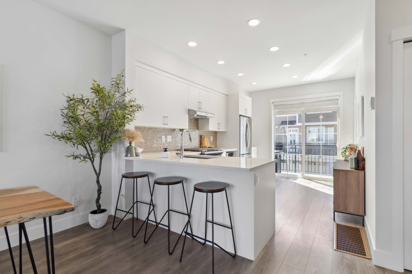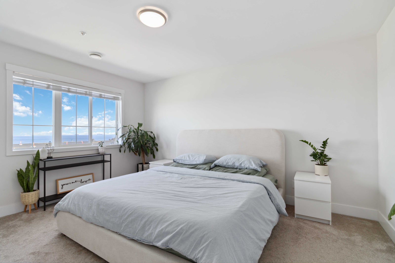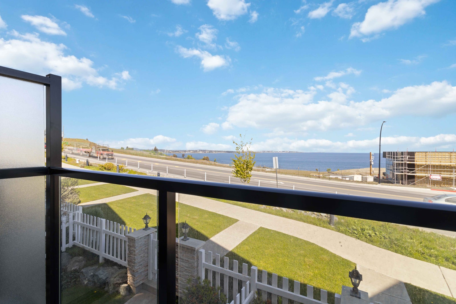 Welcome to your new home in Royal Bay! Built in 2021 by Gable Craft Homes, this three-level townhouse is the perfect combination of luxury and functionality. This 2-bedroom plus den (which could be a 3rd bedroom), 3-bathroom townhouse boasts breathtaking water views with glimpses of the Olympic Mountains and Mount Baker. Your open concept kitchen was meticulously designed with quartz coutertops, stainless steel appliances, and a gas range. Enjoy tons of natural light that floods through the open main floor and the airy 9-foot ceilings make this townhouse a must see. Upstairs, enjoy the two large bedrooms which each feature their own ensuite. Plus, the home comes complete with a generously sized single garage and fenced-in yard where you can access the street easily. This incredible community is surrounded by parks, schools, shopping restaurants, trails, and walkable beach access. Come check out the stunning views at this completely move-in ready gem!